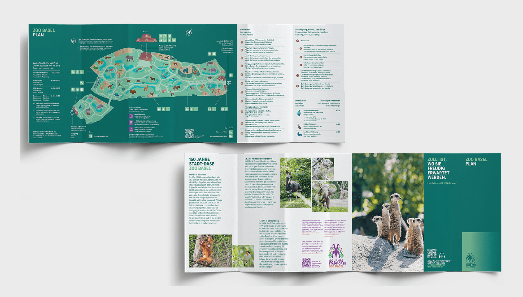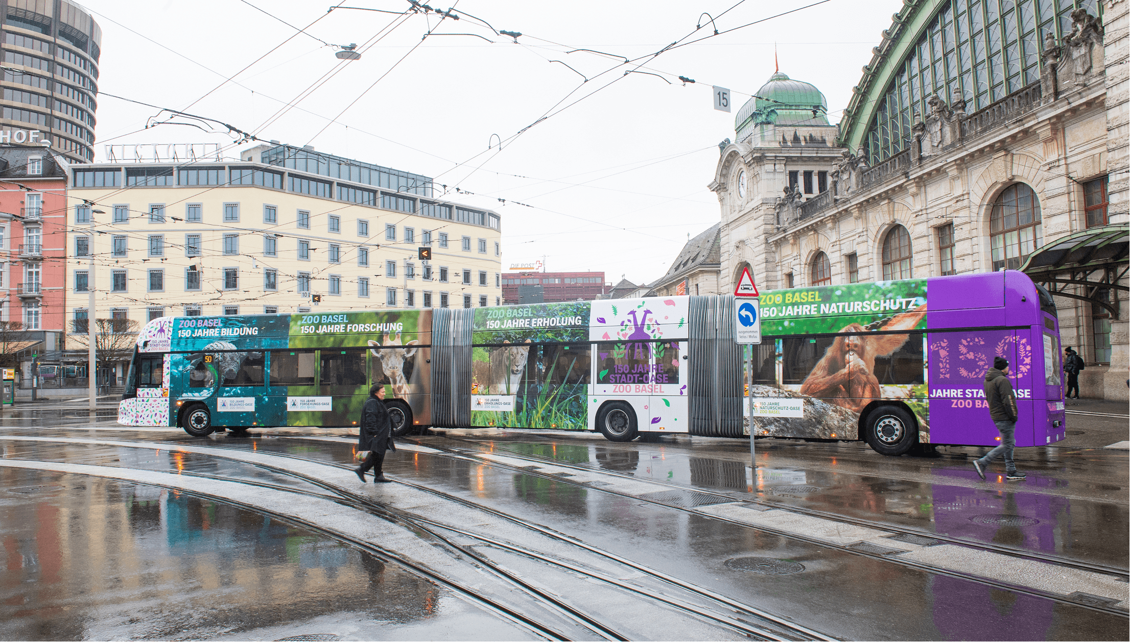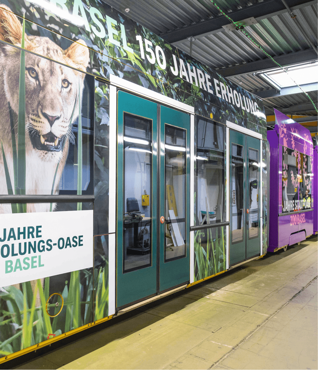 Zu den zentralen Arbeiten gehören ein vollständiges Rebranding, Imagekampagnen, Plakate am EuroAirport sowie die Jubiläumskampagne zum 150-jährigen Bestehen, in deren Rahmen wir unter anderem ein komplettes Tram zur rollenden Werbefläche gemacht haben. Ebenso verantwortungsvoll gestalten wir Signaletik, neue Briefschaften, Eventeinladungen, Zoopläne und diverse Massnahmen im Bereich Corporate Publishing. Allen Projekten gemein: ein Löwenanteil an Engagement, Leidenschaft und «Communication Arts».